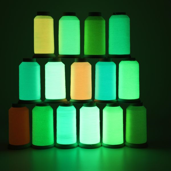 多规格适配能力:提供150D、300D等多种线径规格,兼容手工刺绣与电脑绣花机操作要求。发光颜色涵盖黄绿色、蓝绿色等选项,并区分普通夜光线和高亮夜光线,满足不同亮度需求与应用场景。