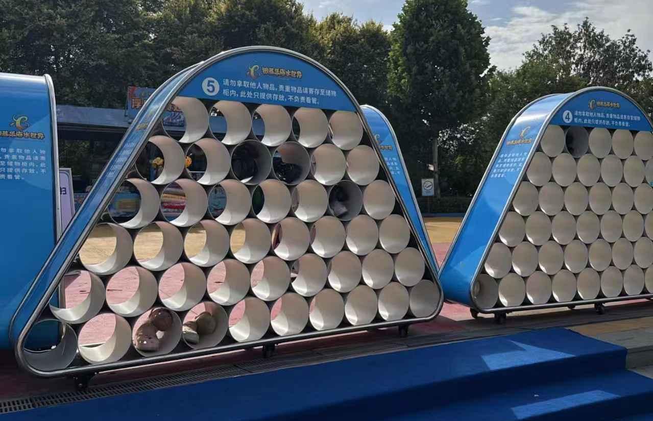 蜂窝置物桶是一种采用蜂窝结构设计的移动储物设备,主要用于公共场所的物品分类与临时存放。其主体框架通常采用不锈钢材质,置物桶部分由PVC圆筒构成,底部配备万向轮以便灵活移动,适用于水公园、景区、游泳馆、中高端酒店等场所,并支持定制编号管理。