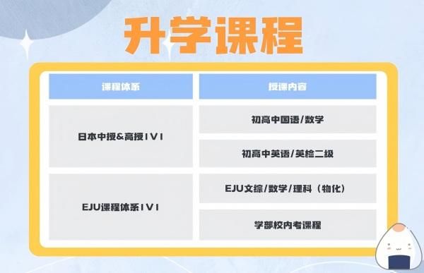 课程内容:针对日本初高中升学、日本大学升学,提供相应的升学考试辅导课程。