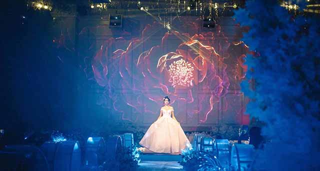 此婚礼以终身的爱为主题。在婚礼上,各种奇幻场景层出不穷,并加入了我国婚礼元素,营造出一同的浪漫气氛。