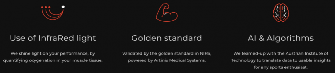 TRAIN RED可穿戴肌氧监测设备的工作原理,是通过向肌肉组织发射光并测量肌肉中血红蛋白吸收和反射的光量,以确定肌肉组织中含氧和脱氧血红蛋白的浓度。从NIRS数据中,我们能够计算出氧化血红蛋白的百分比,称为肌氧饱和度。