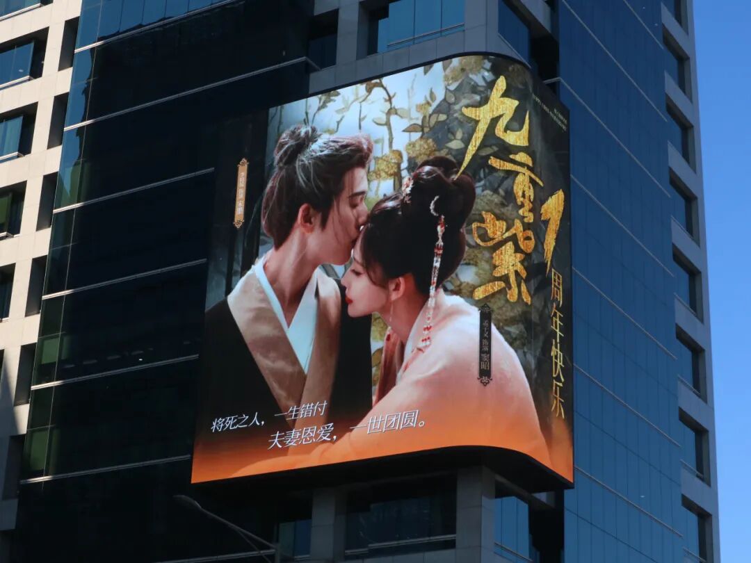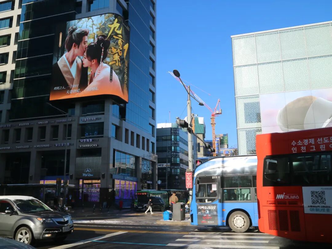 户外宝精准捕捉这一需求,承接粉丝委托落地首尔尚震大厦Sangjin大厦墙应援。当《九重紫》名场面在首尔弘大核心区的16M*14M巨屏上滚动播放时,不仅在国内粉丝圈引发刷屏,更吸引韩国当地网友、留学生自发打卡分享,实现 “一次应援,两国传播” 的破圈效果,成为粉丝应援的 “终极王牌”。