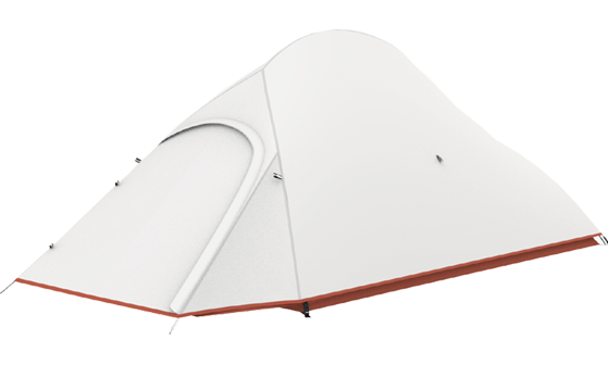 第二款推荐的轻量涂硅帐篷,以轻量化与舒适空间为核心亮点,更适合注重出行便捷性与居住体验的背包客。帐篷外帐采用20D  PU2000mm尼龙涂硅面料,结合多重压胶工艺,杜绝雨水从接缝处渗入,为露营者提供干爽宿营环境;尼龙涂硅材质兼具轻量化与抗风性,进一步提升帐篷耐用性。支架选用铝杆,韧性十足,抗风性能优异,可应对户外多变风力条件。帐篷整体重量仅3kg(含地钉等配件),收纳尺寸为52*15*15cm,轻量化优势显著,极大降低长途背负压力。在空间设计上,该帐篷尺寸为270*125*105cm,头部与身体活动空间充裕,避免了单人帐篷常见的局促感,同时配备门厅,可放置鞋子、背包等随身物品,提升使用便利性。此外,帐篷外帐两侧增设风绳连接头,进一步增强防风稳定性,内帐的防绒绸材质则能有效阻隔寒气,适配春夏秋三季出行需求。